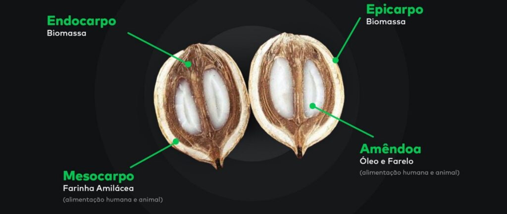Suplemento alimentar, combustível sólido e ração animal proveniente do coco babaçu, gerando valor econômico, social e ambiental para parceiros, coletores e quebradeiras de coco.